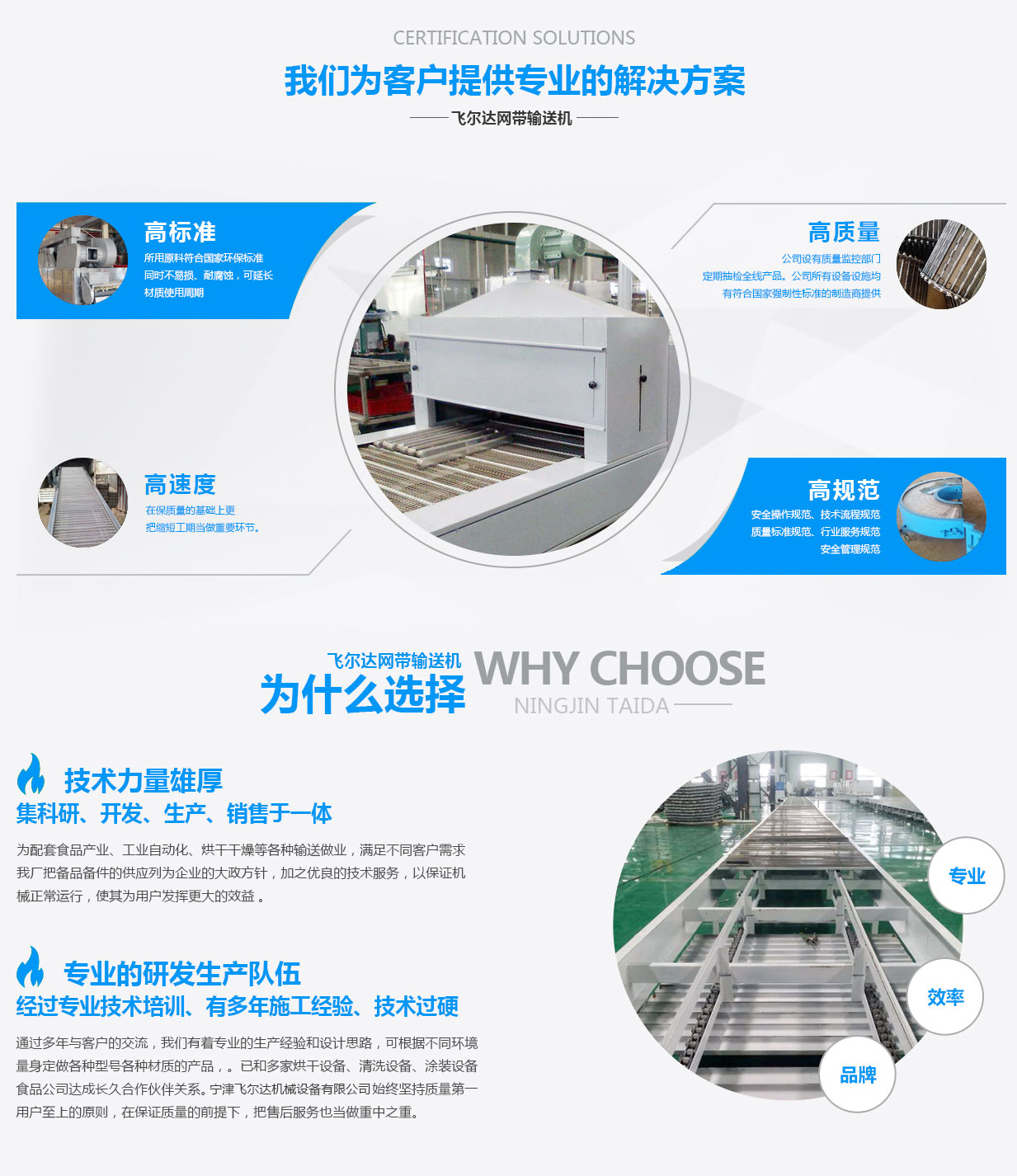 寧津飛爾達機械設(shè)備有限公司始建于1997年,位于山東省寧津縣經(jīng)濟開發(fā)區(qū)。本公司以生產(chǎn)制造金屬類網(wǎng)帶、鏈板、鏈條為主導(dǎo)產(chǎn)品。 建廠近20年,已和多家烘干設(shè)備、清洗設(shè)備、涂裝設(shè)備、食品公司、工業(yè)自動化達成長久合作伙伴關(guān)系。在保質(zhì)量、保工期的基礎(chǔ)上更把售后當做重要環(huán)節(jié)。 本廠配件系列有:輸送網(wǎng)帶、輸送鏈板、輸送鏈條、乙型網(wǎng)帶、烘干網(wǎng)帶、清洗網(wǎng)帶、不銹鋼鏈板、沖孔鏈板、排屑鏈板。 設(shè)備系列:網(wǎng)帶輸送機、鏈板輸送機、烘干輸送機、清洗輸送機、轉(zhuǎn)彎輸送機。